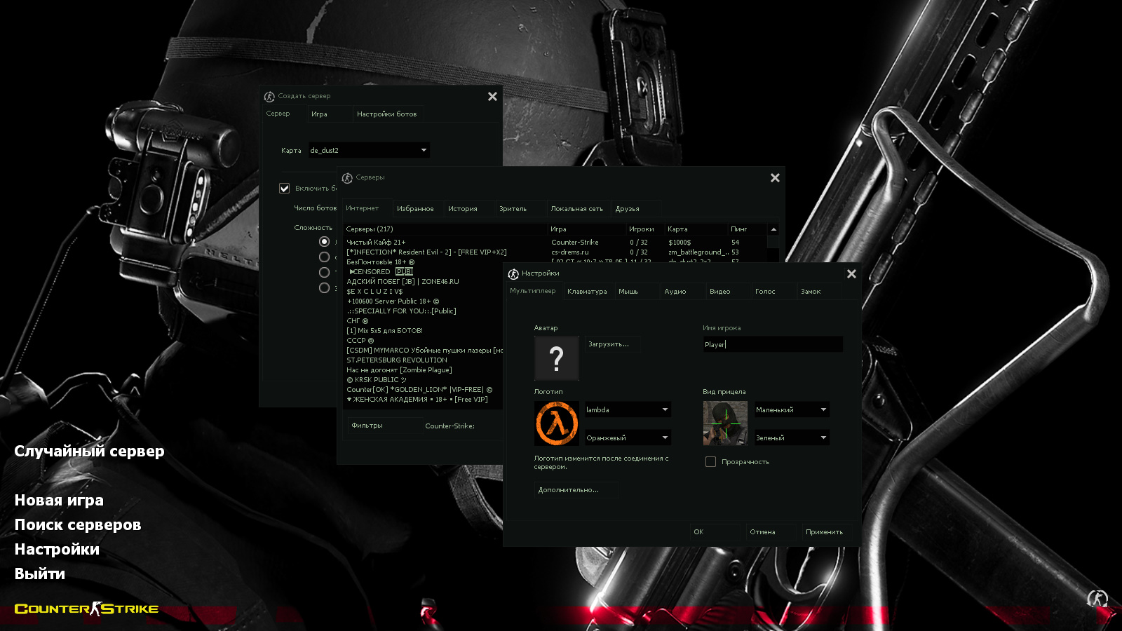 CS 1.6 Cool HD — это прокачанная сборка Counter-Strike с 10 обновлениями, среди которых: 30 скинов оружия с перчатками «Бладхаунд» | Зола, красные модели террористов и синие модели спецназа, темно-зеленая тема меню с более яркими зелеными элементами, боец специального подразделения в полном обмундировании в качестве фона главного меню и оптимизированный конфиг. Помимо этого, обновление получили: звуки, музыка в меню, небо, радар и значок запуска.Также сборка обладает всеми возможностями оригинальной игры: работает на всех версиях Windows, можно играть как онлайн (250+ серверов), так и с ботами на любых картах, ставить русский никнейм и писать в чате по-русски, устанавливать любые моды.