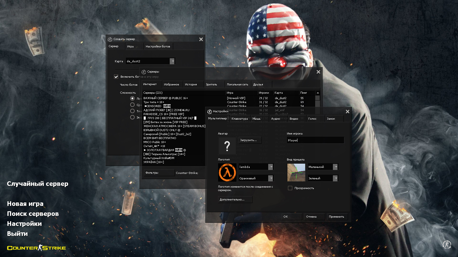 CS 1.6 Havoc — это прокачанная сборка Counter-Strike с 8 улучшениями, среди которых: 29 скинов оружия, темная тема меню с полупрозрачными элементами, персонаж игры PayDay в маске клоуна с флагом США в качестве фона главного меню и оптимизированный конфиг. Помимо этого, обновление получили: звуки, музыка в меню, радар и значок запуска.Также сборка обладает всеми возможностями оригинальной игры: работает на всех версиях Windows, можно играть как онлайн (250+ серверов), так и с ботами на любых картах, ставить русский никнейм и писать в чате по-русски, устанавливать любые моды.
