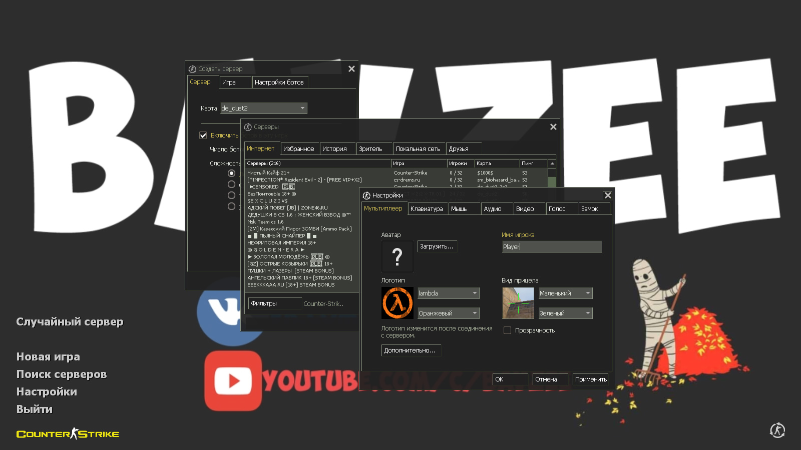 CS 1.6 от Bavzee — это сборка Counter-Strike от бывшего ютубера с 8 апгрейдами, среди которых: 15 скинов оружия от блогера, красные модели террористов и синие модели спецназа, серо-зеленая тема меню, никнейм автора сборки крупными буквами BAVZEE в качестве фона главного меню и оптимизированный конфиг. Помимо этого, обновление получили: звуки, музыка в меню и значок запуска.Также сборка обладает всеми возможностями оригинальной игры: работает на всех версиях Windows, можно играть как онлайн (250+ серверов), так и с ботами на любых картах, ставить русский никнейм и писать в чате по-русски, устанавливать любые моды.