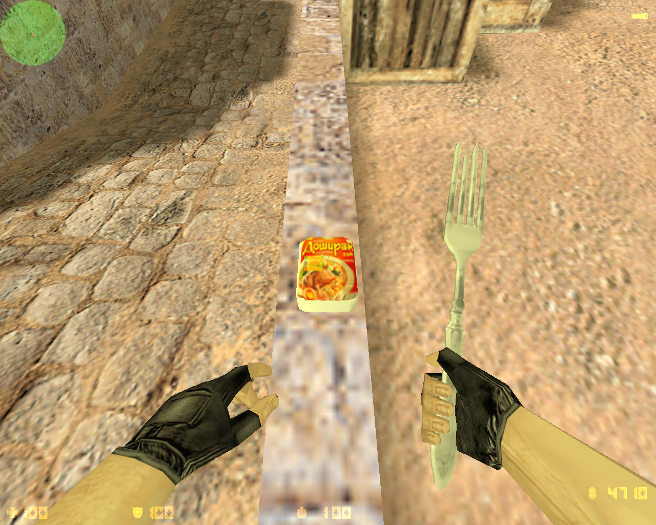 CS 1.6 от Бичпакетов — это кринжовая сборка Counter-Strike, которая содержит 6 изменений, среди которых: вилка вместо ножа и пачка «Дошика» вместо рюкзака, команда Роллтон за террористов и команда Доширак за спецназ, новый фон и оптимизированный конфиг. Помимо этого, обновление получили: музыка в меню и значок запуска.Также сборка обладает всеми возможностями оригинальной игры: работает на всех версиях Windows, можно играть как онлайн (250+ серверов), так и с ботами на любых картах, ставить русский никнейм и писать в чате по-русски, устанавливать любые моды.