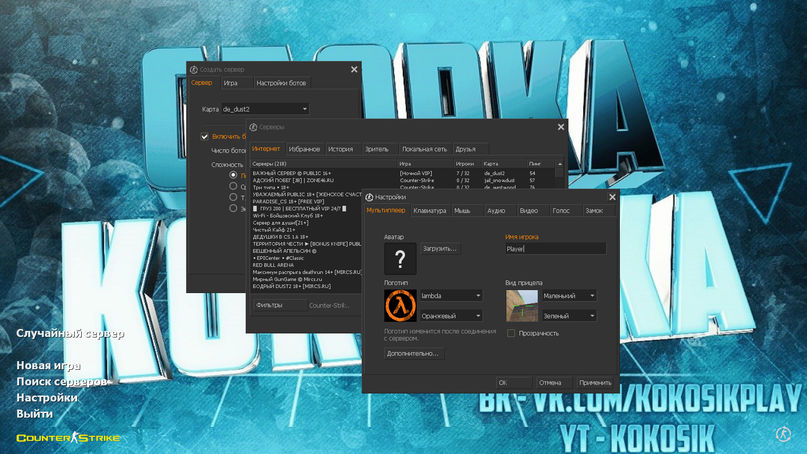 CS 1.6 от Кокосика — это сборка Counter-Strike от блогера с ютуб-канала Kokosik с 8 обновлениями, среди которых: 13 любимых скинов оружия от блогера, красные модели террористов и синие модели спецназа, темная тема меню с оранжевыми элементами, никнейм автора в голубых тонах в качестве фона главного меню и оптимизированный конфиг. Помимо этого, обновление получили: звуки, музыка в меню и текстуры карт.Также сборка обладает всеми возможностями оригинальной игры: работает на всех версиях Windows, можно играть как онлайн (250+ серверов), так и с ботами на любых картах, ставить русский никнейм и писать в чате по-русски, устанавливать любые моды.