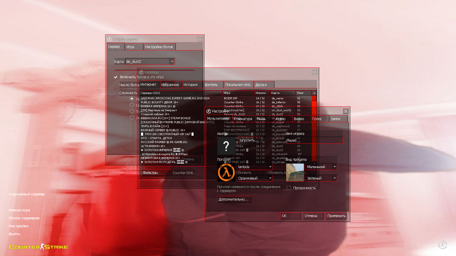 CS 1.6 от KuraRaze — это сборка Counter-Strike от блогера с ютуб-канала KuraRaze с 8 изменениями, среди которых: 7 скинов оружия в красно-черной цветовой гамме, красные террористы и синий спецназ, красная полупрозрачная тема меню, лохматый анимешник в качестве фона главного меню и оптимизированный конфиг. Помимо этого, обновление получили: музыка в меню, небо и значок запуска.Также сборка обладает всеми возможностями оригинальной игры: работает на всех версиях Windows, можно играть как онлайн (250+ серверов), так и с ботами на любых картах, ставить русский никнейм и писать в чате по-русски, устанавливать любые моды.