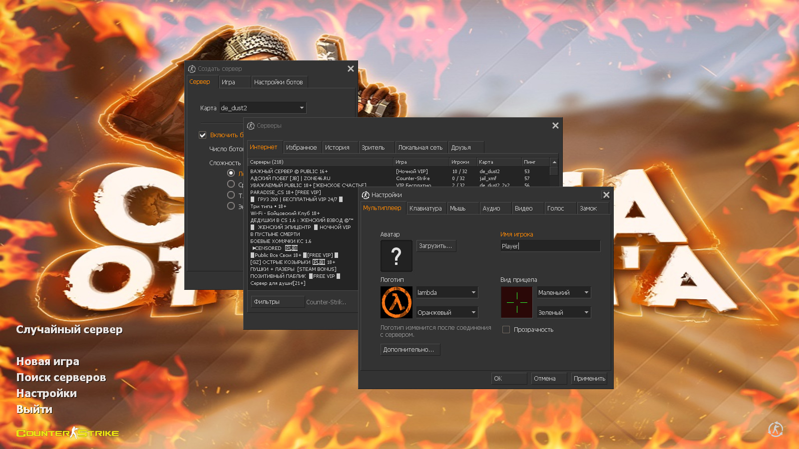 CS 1.6 от Nikan Show — это сборка Counter-Strike от блогера с ютуб-канала 3ai4ik_ с 9 дополнениями, среди которых: 13 скинов оружия на стандартных моделях оружия, красные модели террористов и синие модели спецназа, темная тема меню с оранжевыми элементами, террорист Leet из CS:GO, у которого в руках Glock | Пустынный повстанец в качестве фона главного меню и оптимизированный конфиг. Помимо этого, обновление получили: музыка в меню, текстуры карт, небо и значок запуска.Также сборка обладает всеми возможностями оригинальной игры: работает на всех версиях Windows, можно играть как онлайн (250+ серверов), так и с ботами на любых картах, ставить русский никнейм и писать в чате по-русски, устанавливать любые моды.