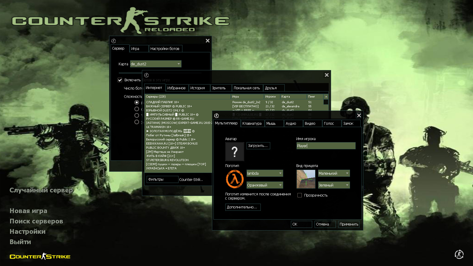 CS 1.6 Reloaded — это прокачанная сборка Counter-Strike с 6 изменениями, среди которых: набор детализированных моделей оружия, темная тема меню с зелеными элементами, команда военного спецподразделения в качестве фона главного меню и оптимизированный конфиг. Помимо этого, обновление получили: звуки и радар.Также сборка обладает всеми возможностями оригинальной игры: работает на всех версиях Windows, можно играть как онлайн (250+ серверов), так и с ботами на любых картах, ставить русский никнейм и писать в чате по-русски, устанавливать любые моды.