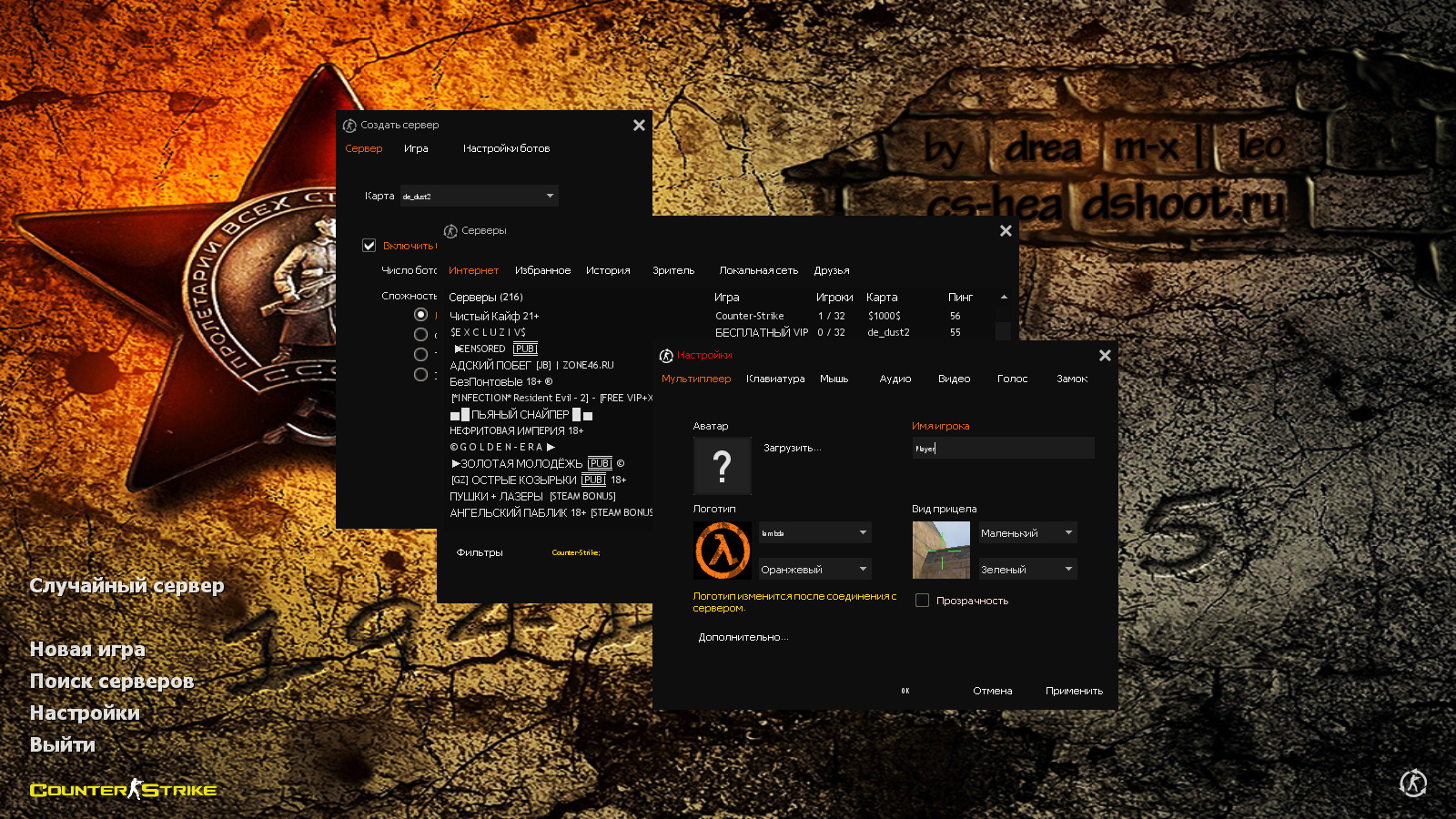 CS 1.6 9 мая День Победы — это тематическая сборка Counter-Strike с 10 новинками, среди которых: 30 моделей старинного оружия, солдаты Красной Армии за сторону спецназа, немецкие солдаты за террористов, черная тема меню с оранжевыми элементами, красная звезда и дата Великой Отечественной Войны в качестве фона главного меню и оптимизированный конфиг. Помимо этого, обновление получили: звуки, музыка в меню, текстуры карт, небо и значок запуска.Также сборка обладает всеми возможностями оригинальной игры: работает на всех версиях Windows, можно играть как онлайн (250+ серверов), так и с ботами на любых картах, ставить русский никнейм и писать в чате по-русски, устанавливать любые моды.