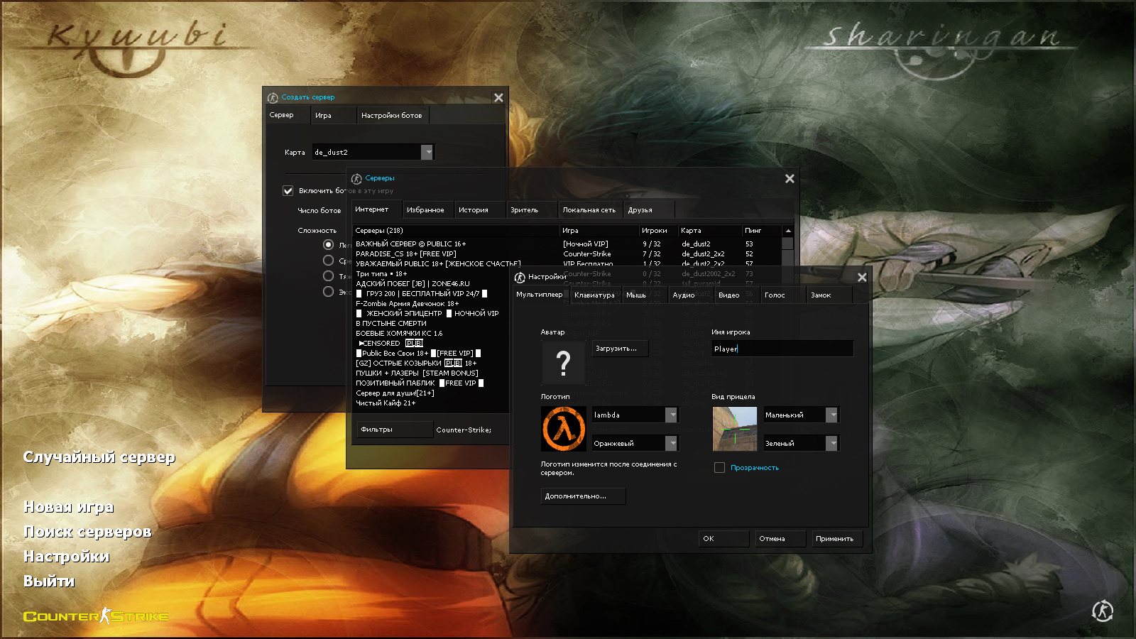 CS 1.6 Naruto — это тематическая сборка Counter-Strike с 7 улучшениями, среди которых: нож Наруто – Кунай, все модели КТ заменены на Наруто, все модели террористов на Саске, темная тема меню с прозрачными и голубыми элементами, наруто Узумаки и Саске Учиха в качестве фона главного меню и оптимизированный конфиг. Помимо этого, обновление получили: звуки и музыка в меню.Также сборка обладает всеми возможностями оригинальной игры: работает на всех версиях Windows, можно играть как онлайн (250+ серверов), так и с ботами на любых картах, ставить русский никнейм и писать в чате по-русски, устанавливать любые моды.