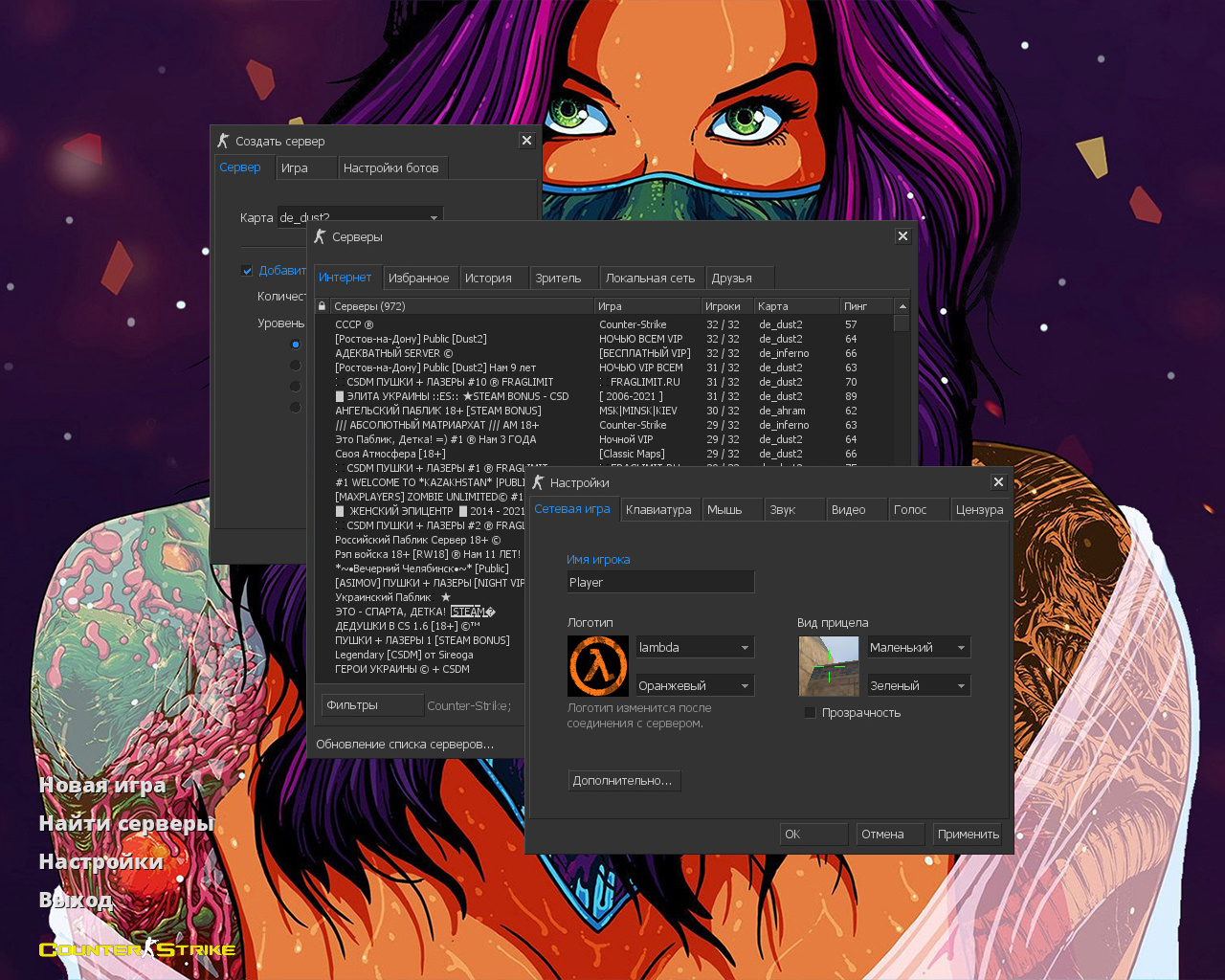 CS 1.6 «Скоростной зверь» — это сборка Counter-Strike, выполненная в стиле скинов «Скоростной зверь» (англ. Hyper Beast) из CS:GO, содержит следующие изменения: 13 скинов «Скоростной зверь», красные и синие модели игроков, фон с девушкой в маске Скоростного зверя, темная тема меню и оптимизированный конфиг. Помимо этого, обновления получили: снайперский прицел, радар, звуки, музыка в меню и значок запуска.Также сборка обладает всеми возможностями оригинальной игры: работает на всех версиях Windows, можно играть как онлайн (250+ серверов), так и с ботами на любых картах, ставить русский никнейм и писать в чате по-русски, устанавливать любые моды.