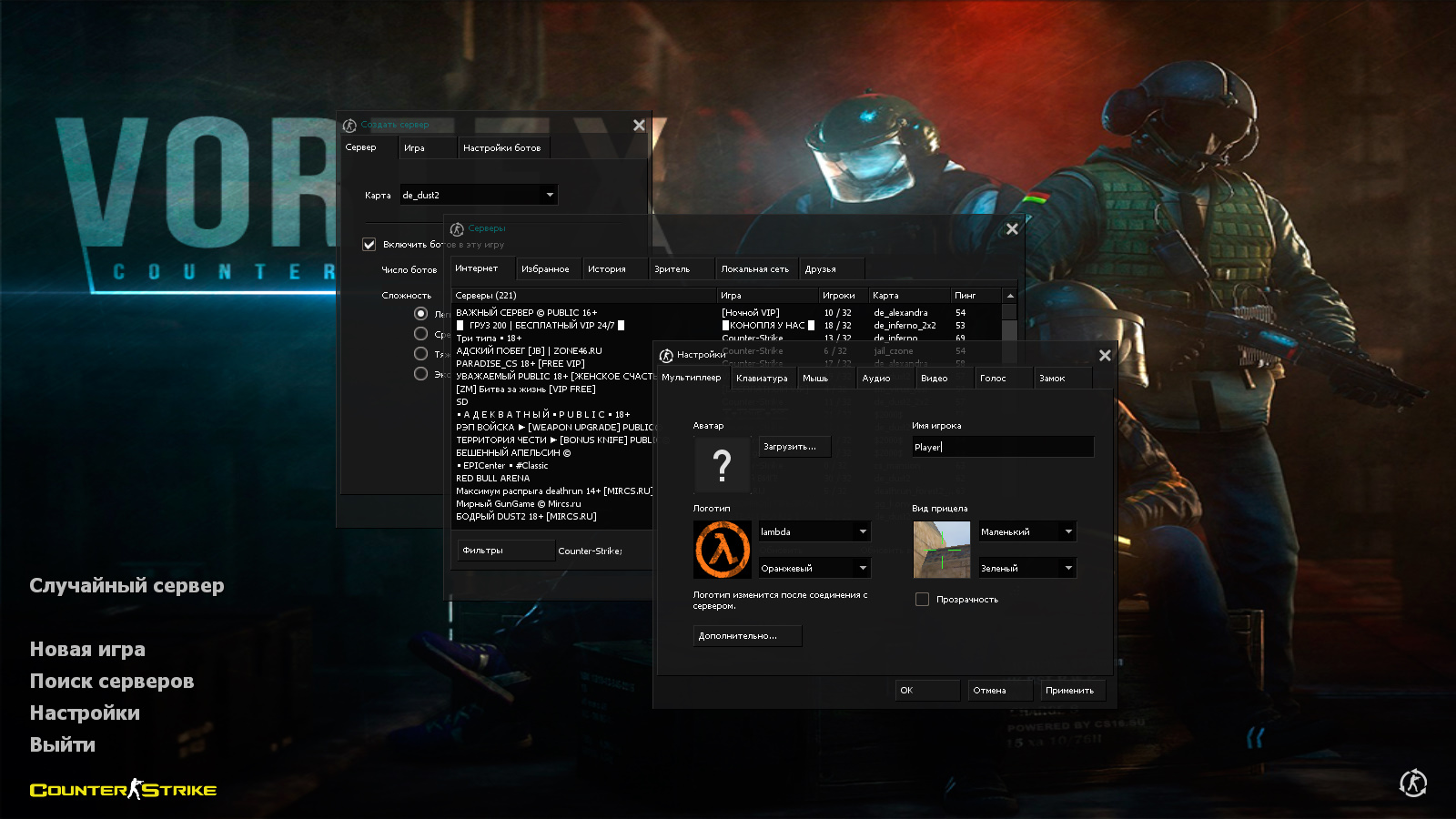 CS 1.6 Vortex — это прокачанная сборка Counter-Strike с 10 дополнениями, среди которых: 29 скинов оружия из CS2 с перчатками спецназа «Удар тигра», красные модели террористов и синие модели спецназа, темная тема меню, четыре контр-террориста в качестве фона главного меню и оптимизированный конфиг. Помимо этого, обновление получили: звуки, музыка в меню, текстуры карт, радар и значок запуска.Также сборка обладает всеми возможностями оригинальной игры: работает на всех версиях Windows, можно играть как онлайн (250+ серверов), так и с ботами на любых картах, ставить русский никнейм и писать в чате по-русски, устанавливать любые моды.